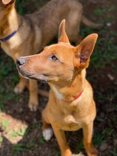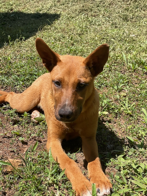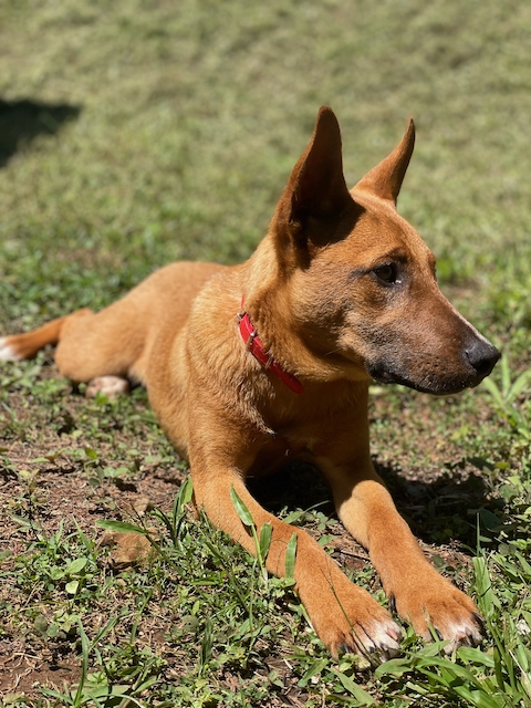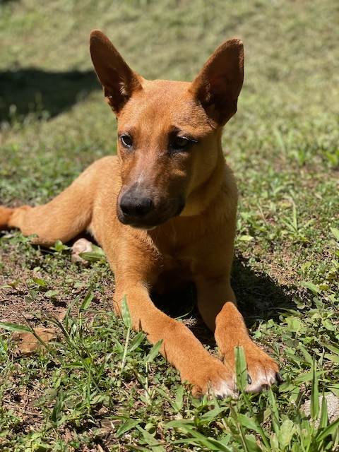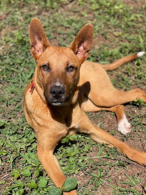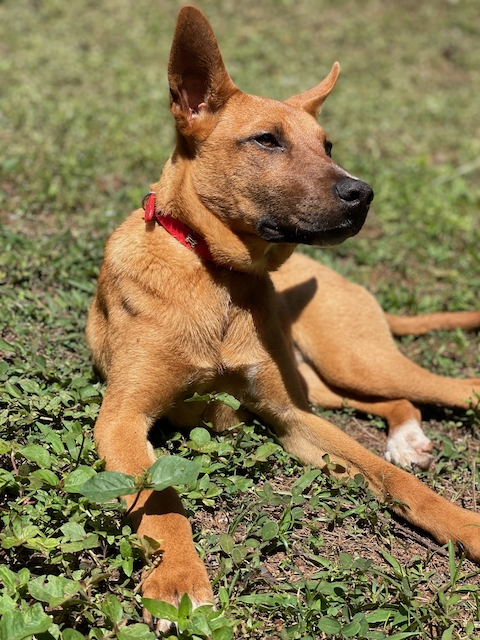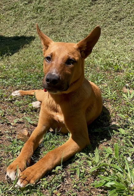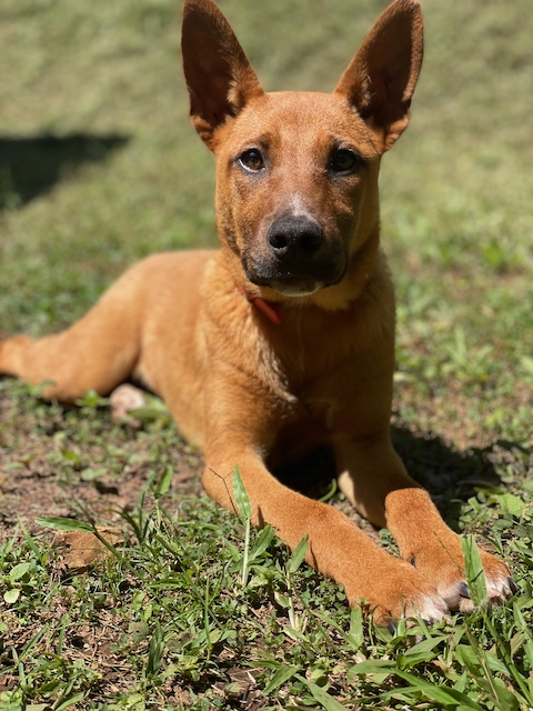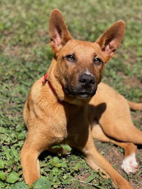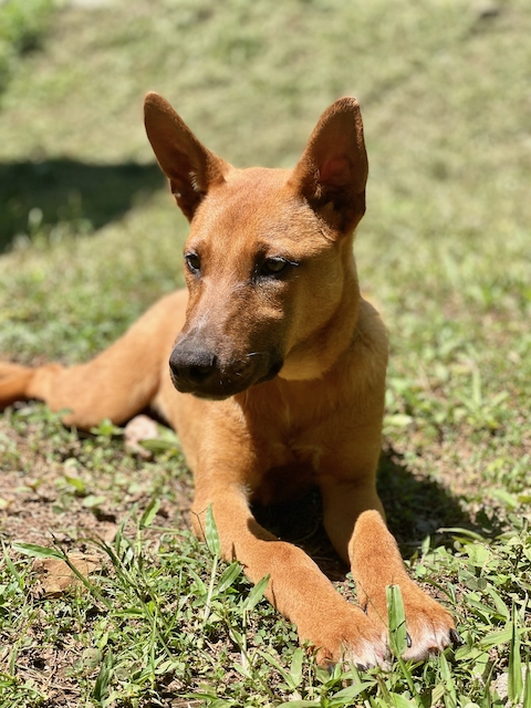 Alma is one of the beautiful puppies rescued from living on the street near a busy highway restaurant. Despite her rough start, she has blossomed into a stunning young, medium-sized shepherd / Belgian Malinois–type mix with a calm, gentle nature and a playful spark.