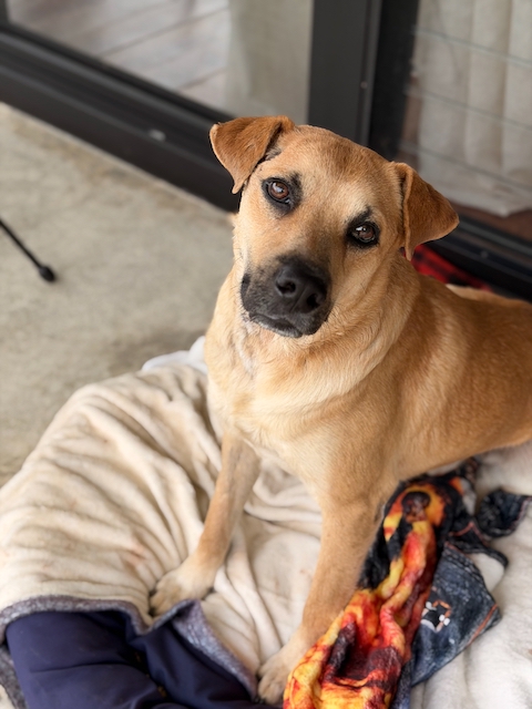He loves being outside, always stays close (foster home has no fence) but he is also perfectly content relaxing indoors with his people.