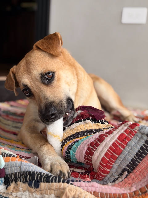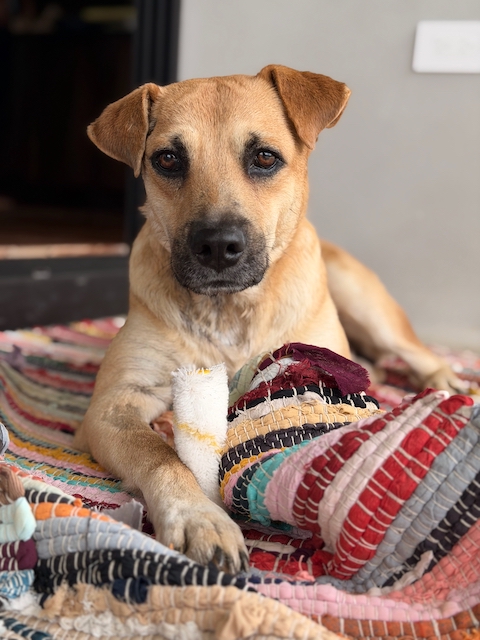 Bruno is a young dog, around two years old, medium-sized, and incredibly well behaved in the home.