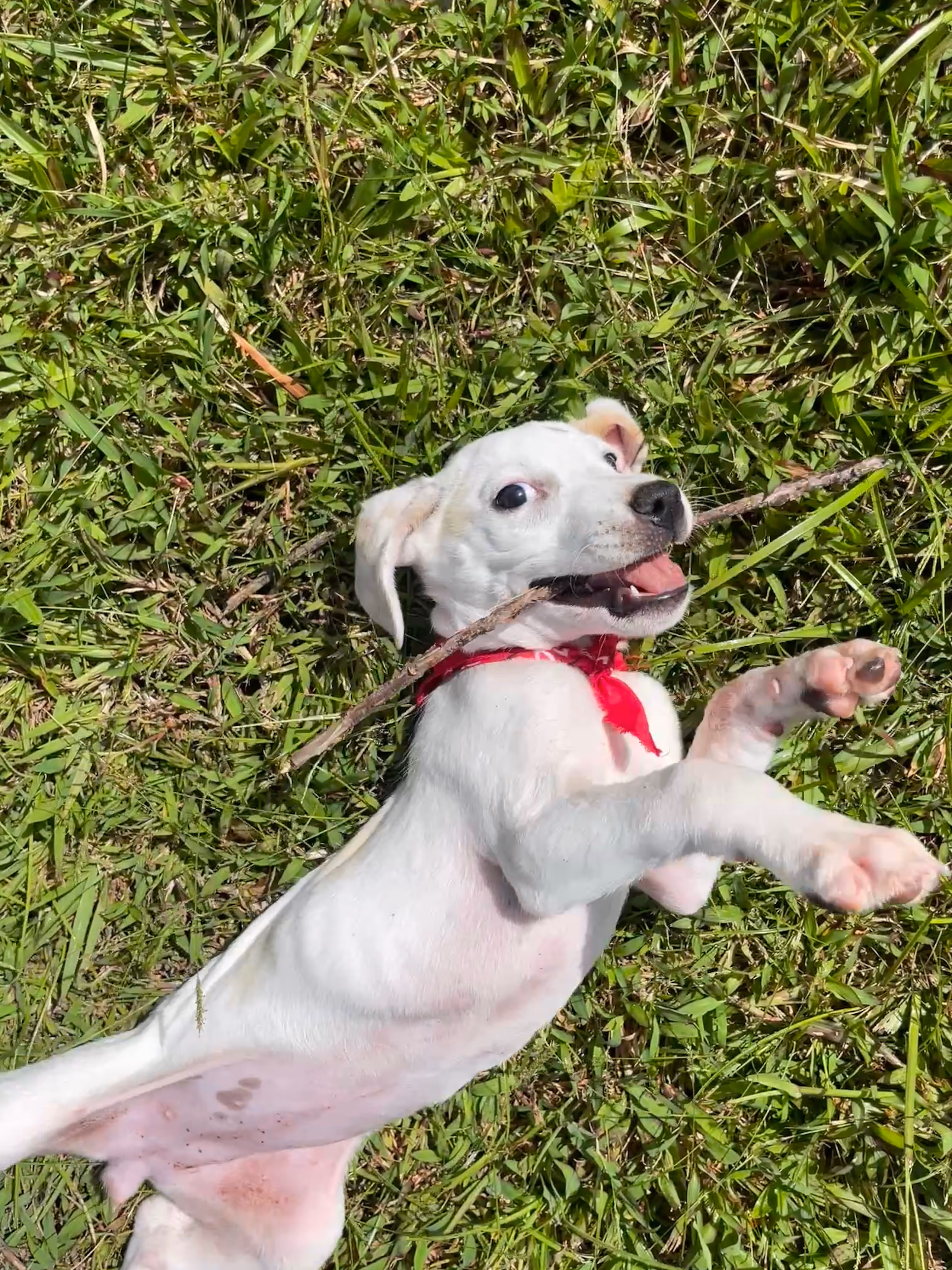 She was rescued alongside her siblings near a plastic bag on the side of the road, but you’d never guess it from her energy and charm. She’s now safe, healthy, and living life to the fullest!