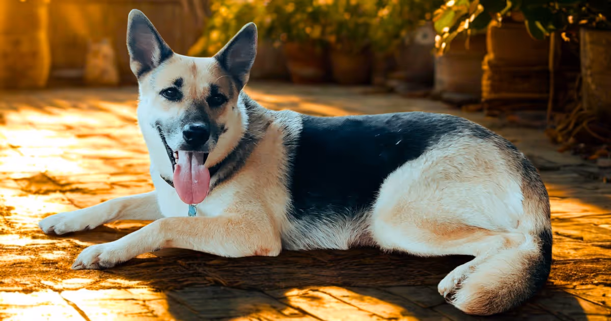 She looks like a pure-bred German Shepherd of lighter color, with the most exquisite face that matches her kind personality.