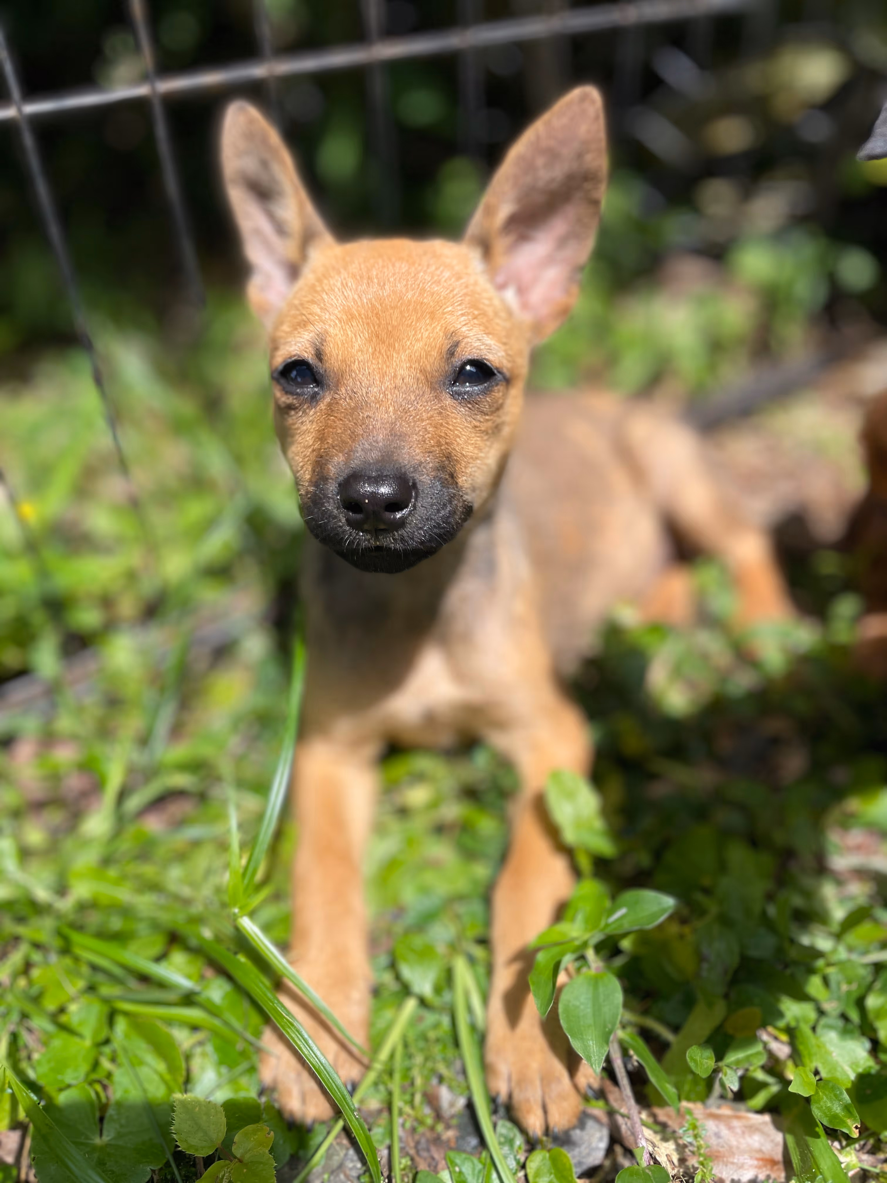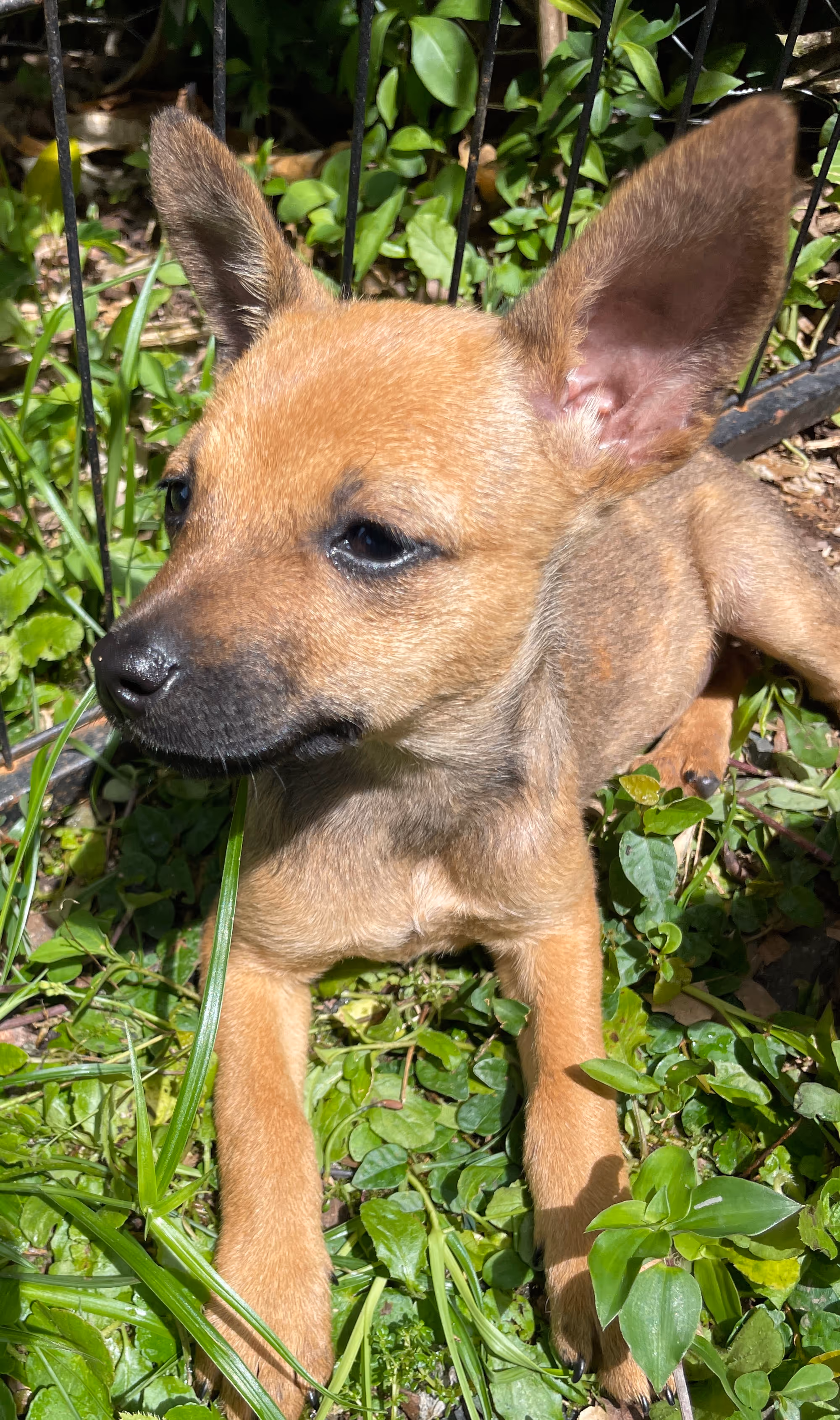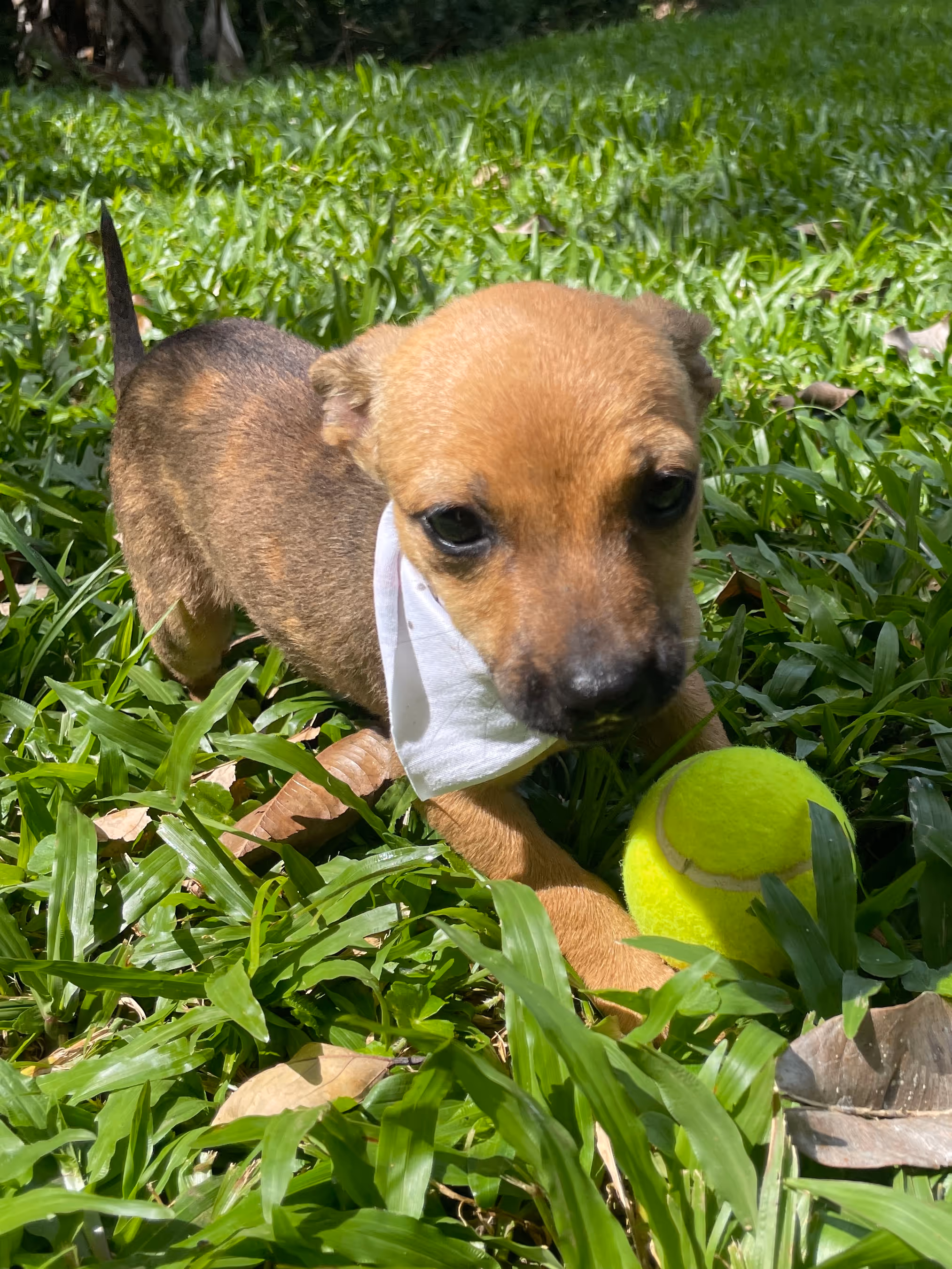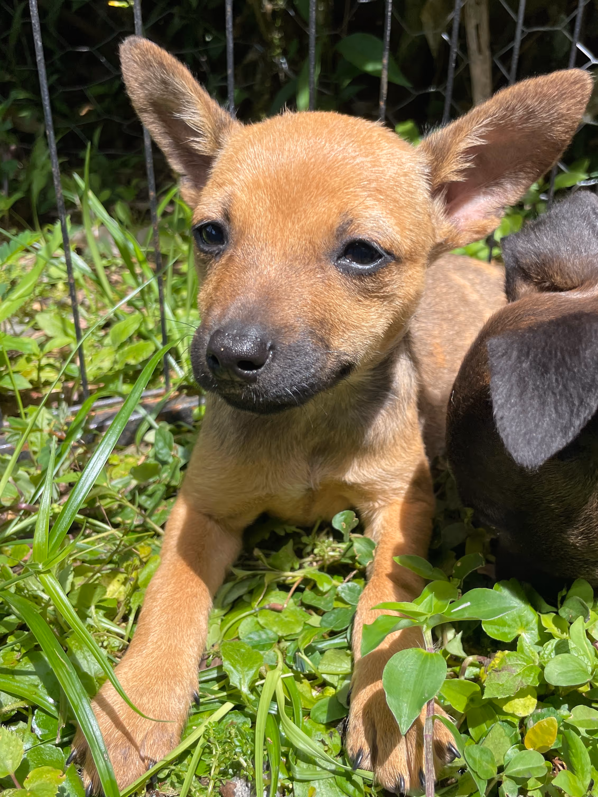 We think Indy might be a Mini Pinscher–Dachshund mix. She weighs about 2 kilos now, so she’ll likely stay small to medium when fully grown.