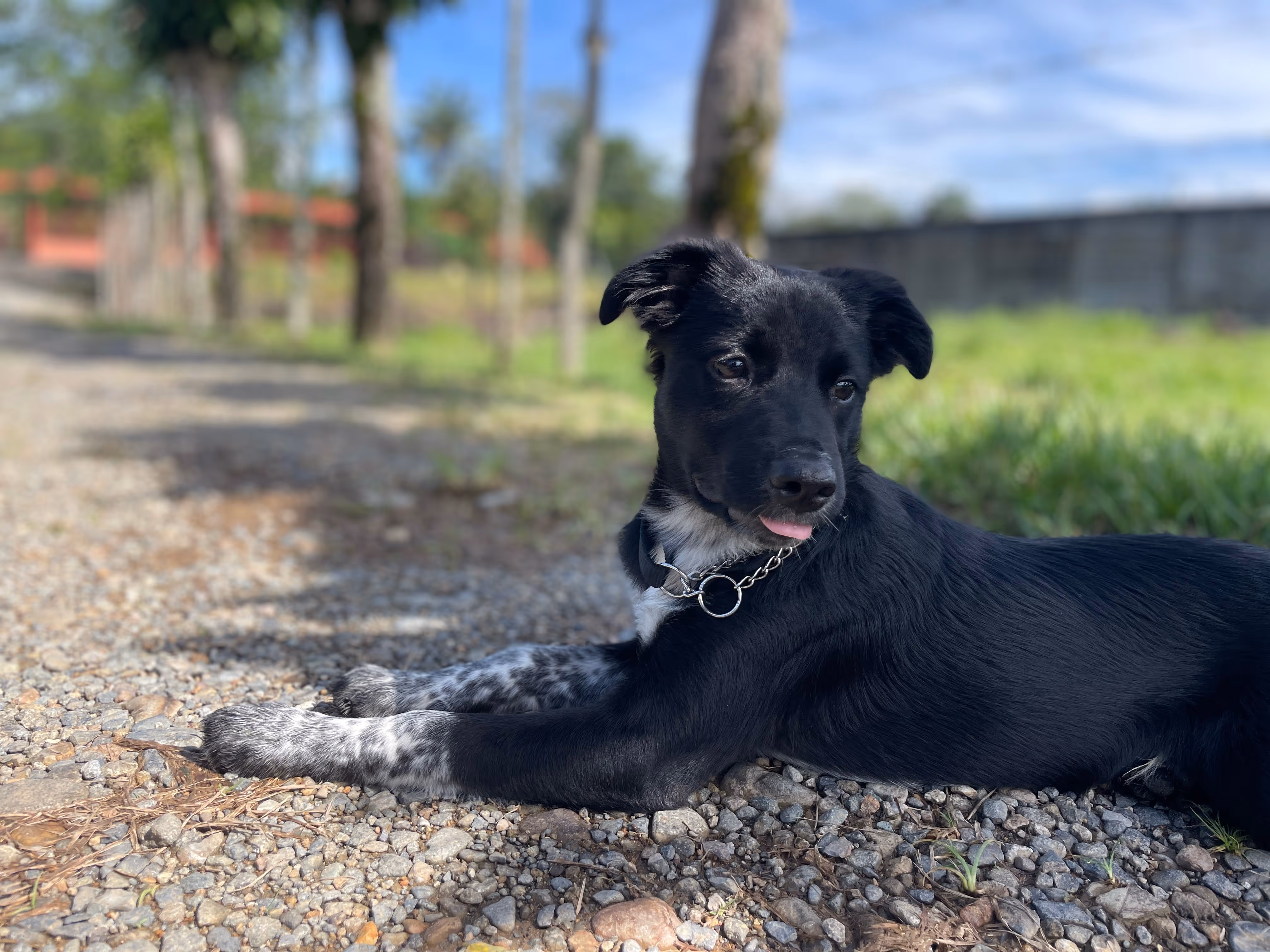 Based on his current size and build, we think he’ll grow into a medium-sized dog — maybe around 14–17 kg (30–37 lbs). He seems to have a bit of a sporty, agile mix in him — maybe some herding or spaniel-type genes — and he’ll definitely thrive with an active family or someone who loves adventures.