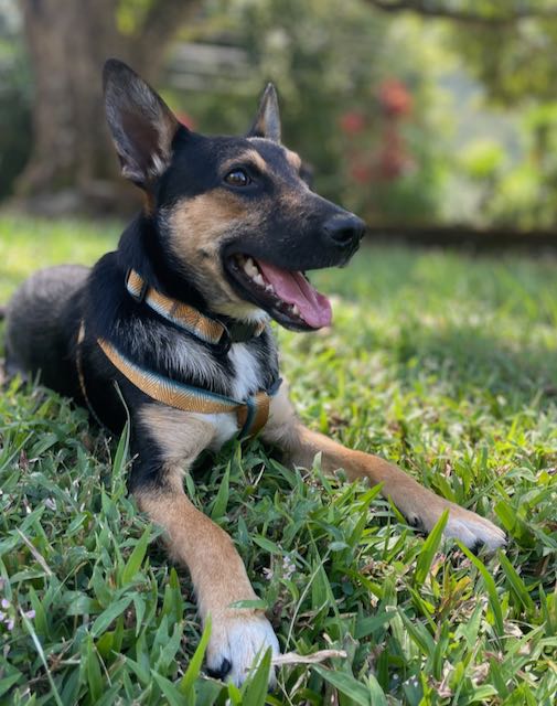Zorro looks bigger in photos than he really is. In real life, he is a smaller medium-sized Mini Shepherd and a very easy dog to have around.