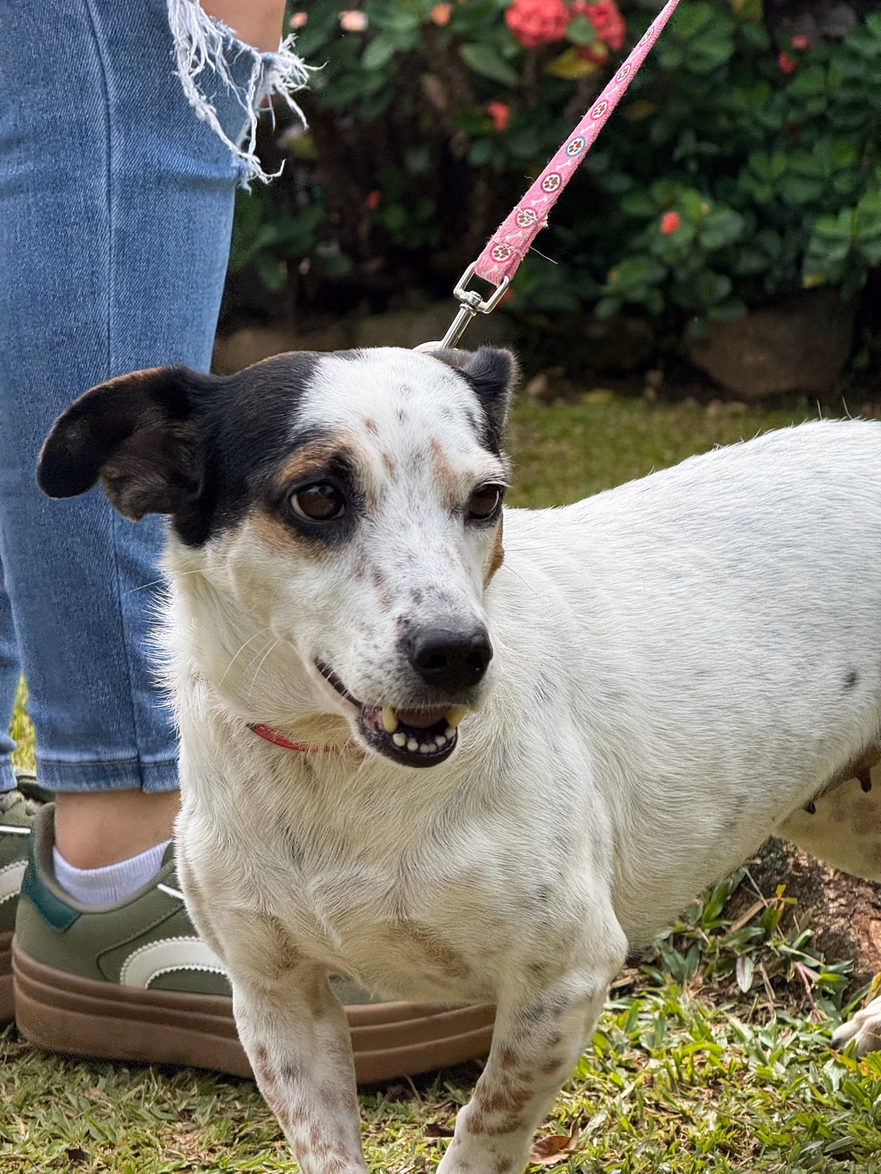 She has a calm nature, a tender heart, and that quiet sweetness you only find in dogs who have loved deeply.