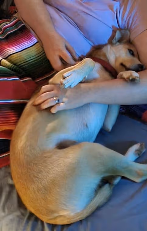 Savanna is about one year old, playful with other dogs, VERY affectionate, and loves lying close to you for belly rubs. She walks beautifully on a leash, is easy to train (very food motivated!), and is house trained.