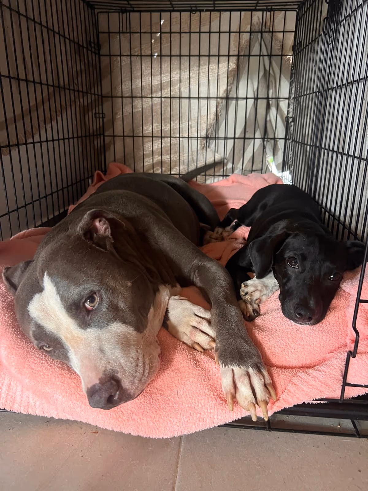 Toby is full house trained and LOVES his crate, he feels safest. He also likes to lay on his bed and chew a good bone or wrestle with his foster friends.